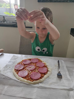 Ook Robbe en Senne sloegen aan het bakken van pizza's.
